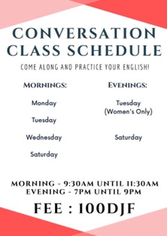Conversation classes have also started. The plan is to have the coffee lounge open most mornings of the week for students to attend, enjoy coffee, and have a great conversation. Also, there will be classes on a couple of evenings each week including one evening for a women’s only group.