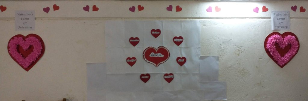 The head librarian is the chief example. Her presence is a gracious blessing. Her love for the library creates a welcoming and hospitable atmosphere. She is constantly crafting, creating little decorations and signs. Last Christmas she decorated the classrooms with golden stars and wrapped boxes that doubled as presents. There was a tree and a wreath for every door. For Valentine’s Day, the walls are covered with pink and red hearts and little