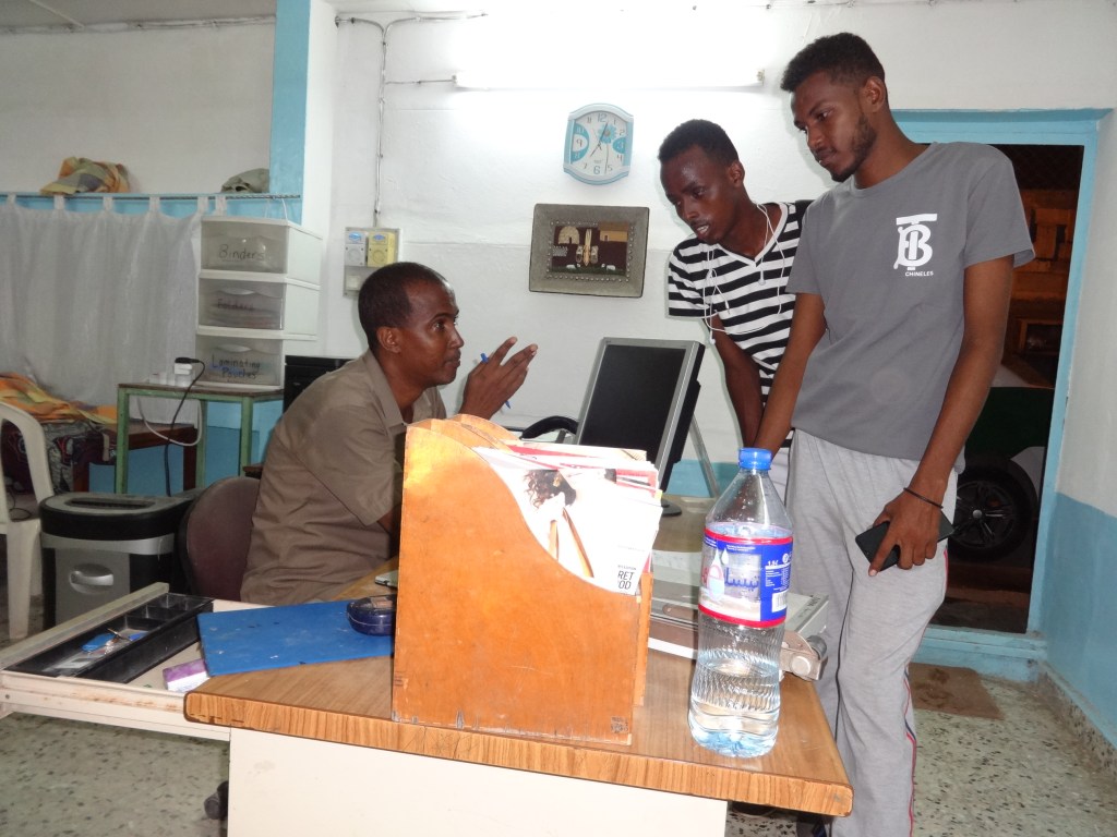 notes saying, “Love is patient, kind, trusting, trustworthy, etc.” Most mornings she is bustling around the library straightening books on the shelves, greeting the students that come to read, waving at the neighbours that pass outside the door. She helps one morning with conversation classes and another morning she tutors one-on-one with a level 2 student. She said recently, “Well I have so much to do and I would probably get more done, but people just keep coming by. And I have to stop and talk to them. I think I am becoming more Djiboutian. I just have to stop and talk to the people!” The students love her and speak fondly of her happy greetings and bright parasol she carries whenever she walks out in the sun.