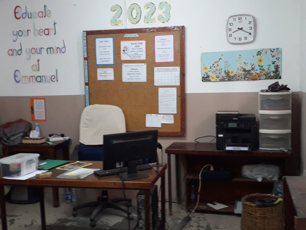 The library is open in the mornings. We reduced the size of the school at the beginning of the summer. Now the library is in the old conversation room. It is definitely a new look for the school, but it is a cosy atmosphere and perfect for reading or study. Already regulars are coming to chat, read, and study. The heat can’t deter the dedicated students. After some intensive cleaning from the dust of a Djiboutian summer, the library computer is also up and working so we can issue books and receive them back. A high priority is to get the computer that students use working as well, so that they can listen to English videos or do research.
