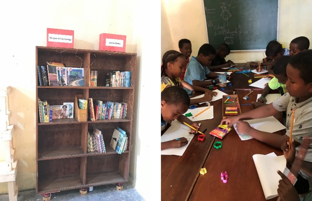 The opening of Oasis Balbala was a noisy, joyful event! This new two room library is the new sister of Oasis Tadjourah. The centre is located in Balbala, the large municipality outside of the capital city.