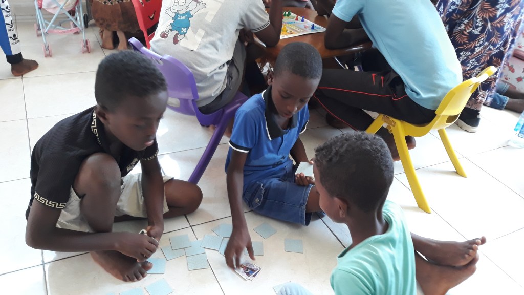 This group started in the spring of 2025 and since then has attracted a small group of very motivated kids. Each week the kids pay 50 franc for the morning of learning: speaking, singing, following directions, role-playing – all in English. The group ranges in age from the youngest being nine years old to the oldest being in college – with the French system that is middle school or upper primary school, and in UK it would be secondary school – about 14 years old.